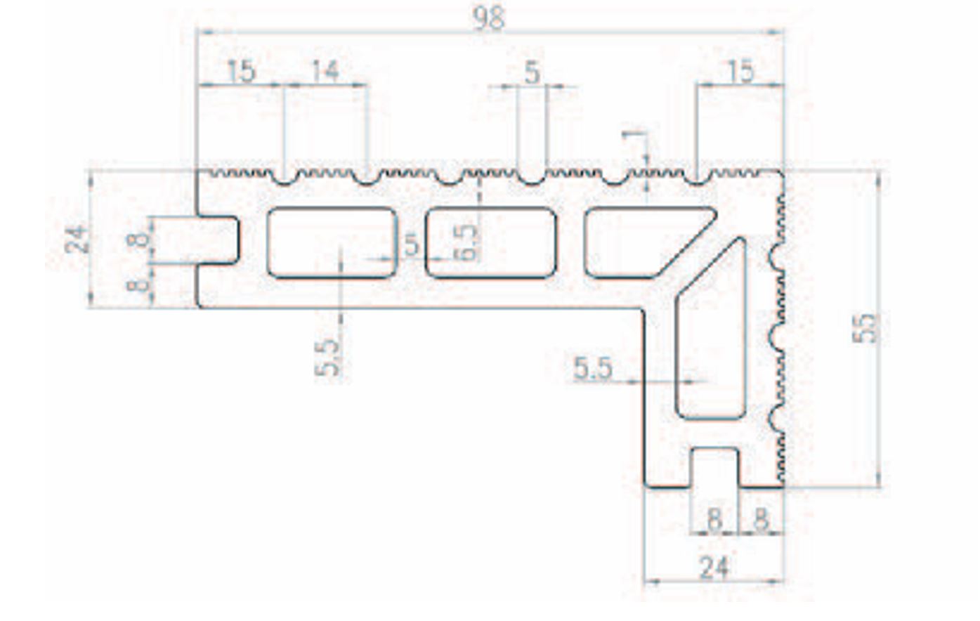 Width 98 mm | Thickness 24 mm | Length 3000 mm | Height 55 mm